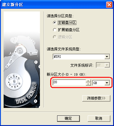 應(yīng)廣大“愛美”用戶的要求,DiskGenius軟件提供了建立整數(shù)分區(qū)的功能。在建立新分區(qū)時,輸入的分區(qū)大小是多少GB,建立分區(qū)并按默認簇大小格式化后,在Windows下顯示的分區(qū)大小就是多少個整數(shù)GB。如下圖所示。需要注意的是,輸入分區(qū)大小時,一定要選擇“GB”單位,選擇“MB”就沒有這個效果了。