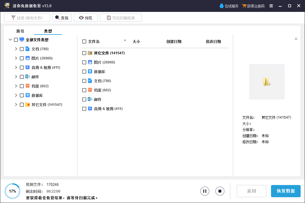 2.智能的搜索算法可以對(duì)磁盤進(jìn)行深度掃描,識(shí)別出丟失的數(shù)據(jù);不管數(shù)據(jù)是什么原因丟失的,只要沒有被覆蓋,還有殘留的文件信息,就可以正常查找到并恢復(fù)。